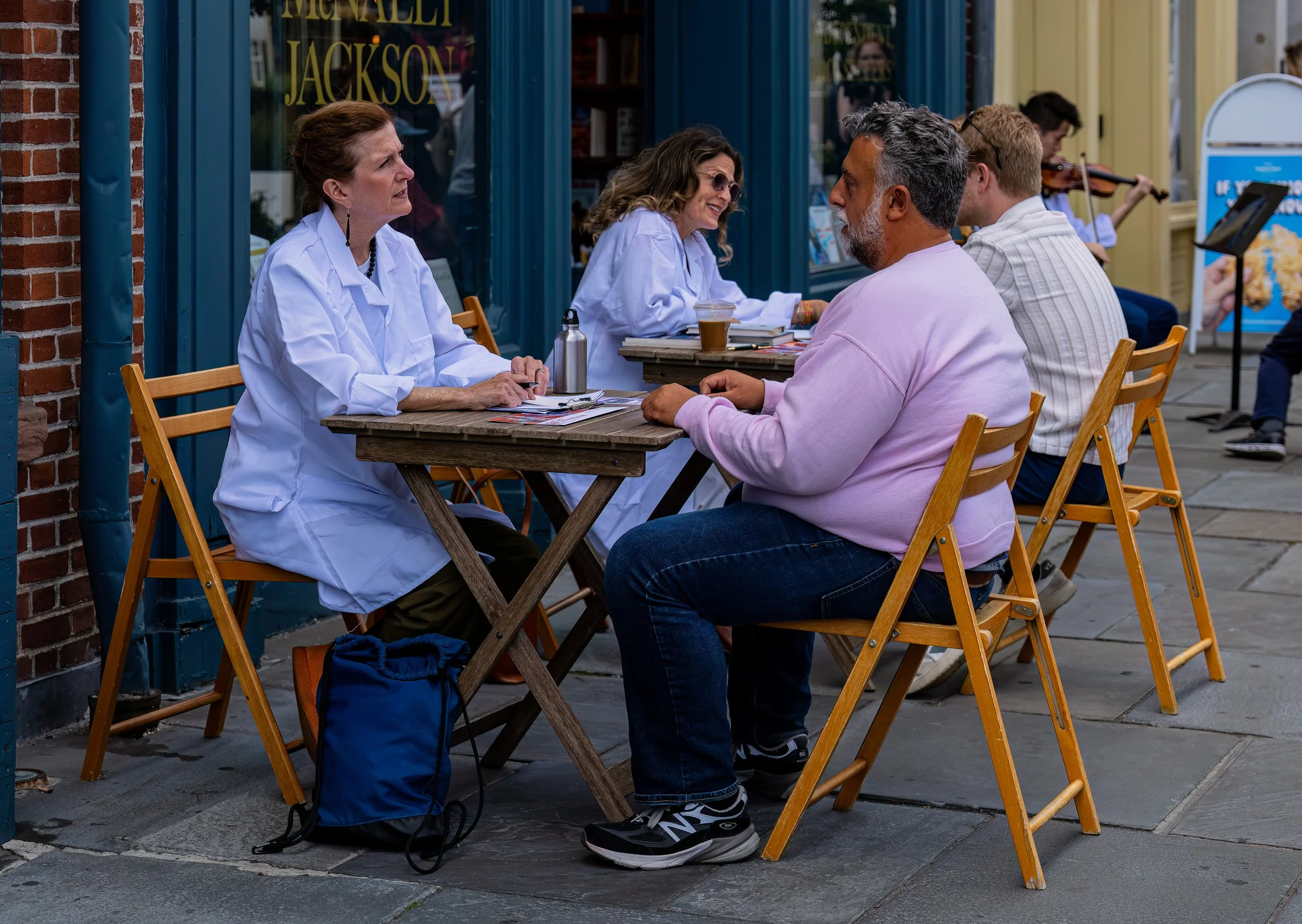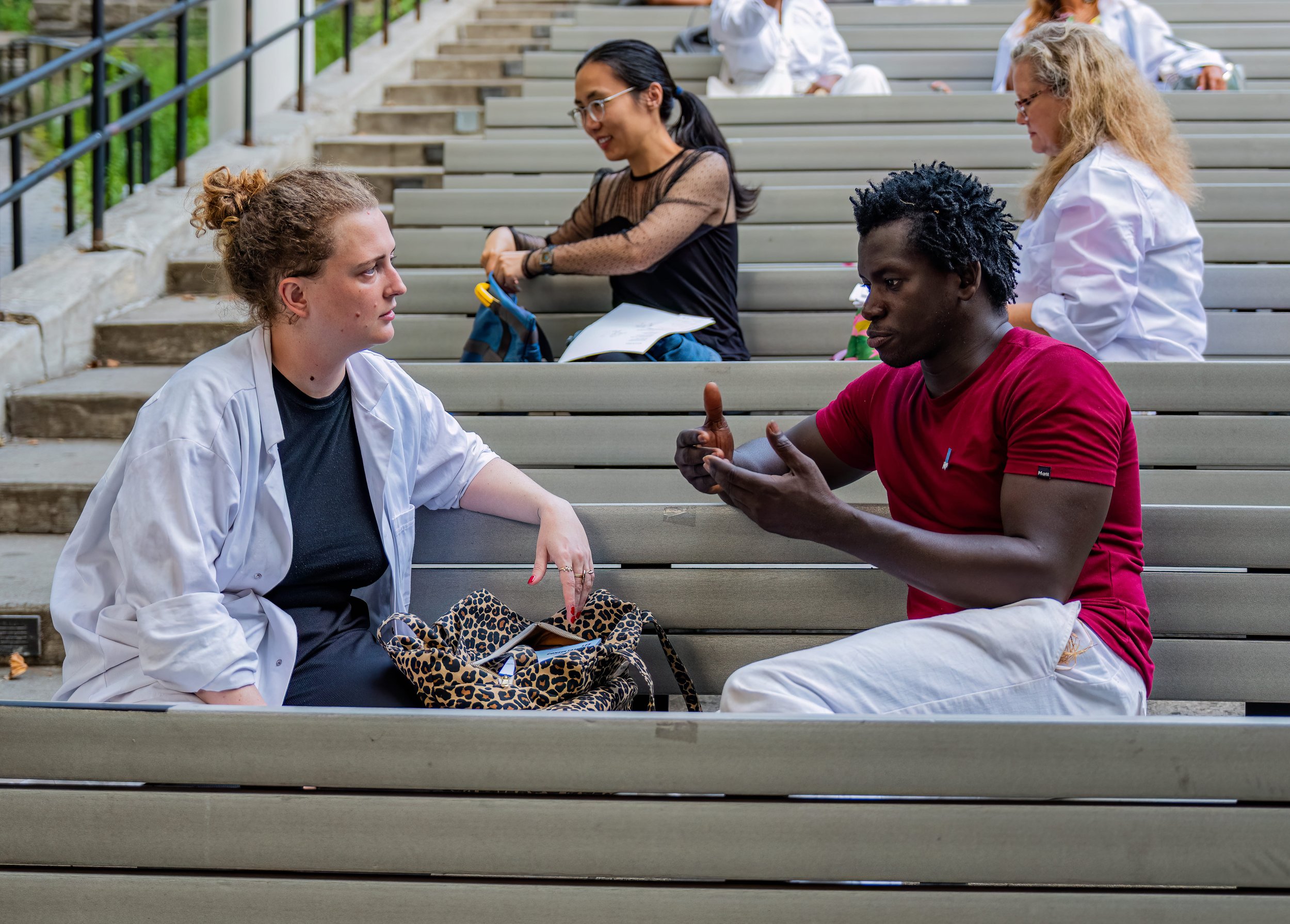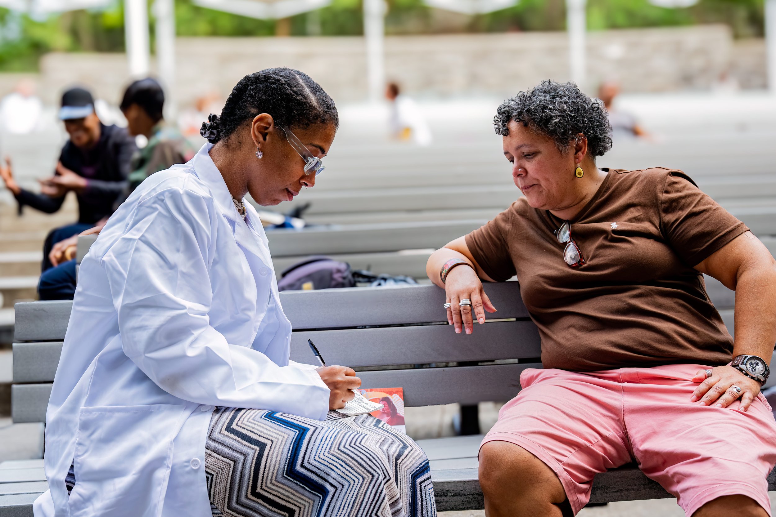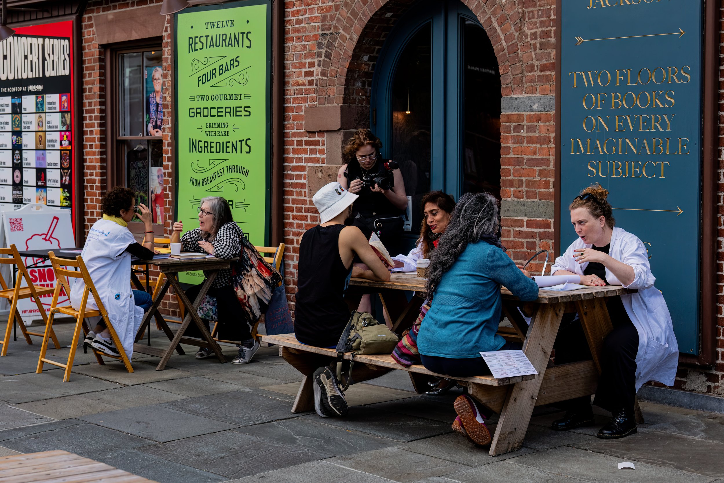 Citizen Arts’s Artistic Director Meg Araneo produced the first U.S. version of Poetic Consultations at the South Street Seaport Plaza and Marcus Garvey Park in September 2025. Presented in partnership with Théâtre de la Ville Paris and the 2025 Down to Earth Festival (reimagined in 2026 as the Citizen Arts International Festival), Poetic Consultations places theater artists, dancers, musicians, and poets in public spaces for one-on-one encounters with passers-by. Each exchange begins with a question,—“How are you?”—and culminates in a personalized artistic “prescription” designed to foster restoration and open new ways of moving through life. Consultations were offered in multiple languages to make all New Yorkers and visitors to the city feel welcome and supported.